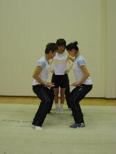 写真3〜5は一つ一つ止めずに、一連の動きで行います。 こういった練習で基本フォームをしっかり身につけておけば、 後に高難度のスタンツをするときにスムーズに練習が進むでしょう。 | | |