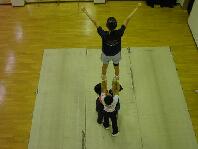 ☆大切なこと 運動が得意な人にとっては簡単でばかばかしく思えるかもしれませんが、 こういった基礎の部分でしっかりと方法と感覚をを覚えておかないと、 のちにピラミッドや大きなスタンツをした時に影響が出てきます。