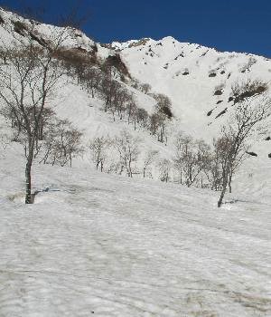 樺平へは直進(右の長走沢)すれば最短距離だが、雪崩多発地帯 |