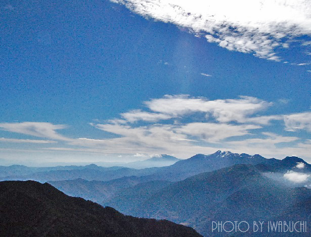 笠岳(中央後方)と西穂高稜線(右手前)を展望