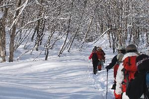 往路■登山口駐車地→(20分)→林道分岐→(30分)→白樺平→(35分)→七合目岳樺→(25分)→大谷丸山山頂