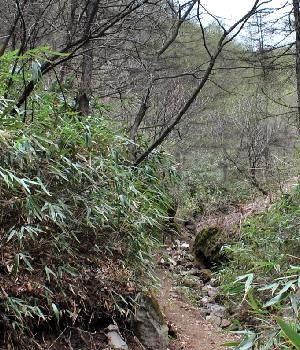 往路■二度上峠登山口→(25分)→岩淵山北鞍部→(40分)→わらび平コース分岐→(10分)→浅間隠山山頂