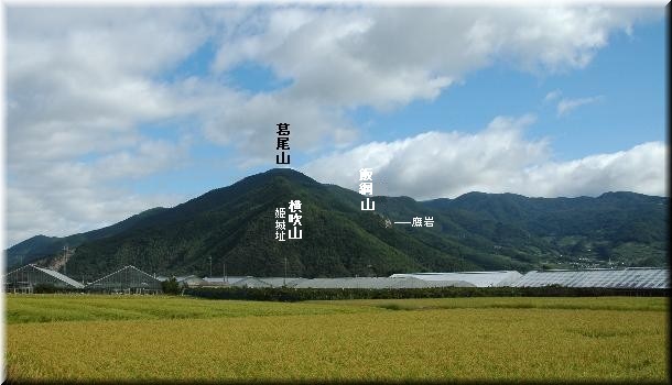 南北の眺めが良いため、戦国の武将村上義清がこの山頂に山城を造ったと言われる 戸倉上山田温泉の千曲川堤防沿いから南東を見ると、五里ヶ峰の大きな山塊の尾根が千曲川に向って下っています。 その尾根の最初のピークが葛尾山で、更に下ったところに横吹山(姫城山)の小ピークがはっきりと解かります。 位置的に南北の眺めが良いため、戦国の武将村上義清がこの山頂に山城を造ったと言われています。 標高は1000mにも満たっていませんが、登山口が400m程なので標高差400mの急登が山頂まで続きます。 |