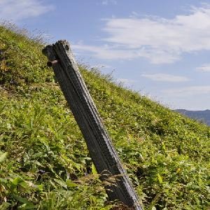 往路■毛無峠登山口→(10分)→林道分岐→(15分)→斜面取り着き地→(30分)→露岩地→(20分)→毛無山山頂 復路■毛無山山頂→(20分)→毛無峠下山口 過去、毛無山単体で一度と御飯岳へ訪れる途中に二度、この丘のような可愛い山に立ったことがあった。ガンコウランと コケモモの群生、さらに眺望の良さが印象に残っていた。そんな素晴らしい山を通過点だけにとどめておくのはもったい ない、何とか登山の対象にしたいと思い立ち、単独で毛無峠に向かった。晴天の朝9時、駐車地には十台程の車が止まっ ていた。破風岳への登山道を歩いている人も見える。今回は破風岳登山口を左折して小串鉱山跡に向かった。前方を見る と小串鉱山に向かう登山者がいるではないか。 9時30分歩きだす。もちろん初めて歩く道、未知との遭遇を期待して…。 |