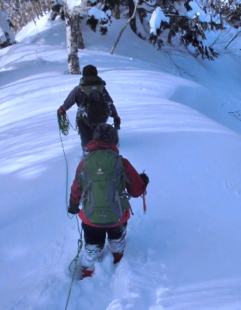 稜線出合いから難所 "鼻突き一丁坂" を見る 12:15
