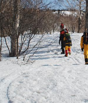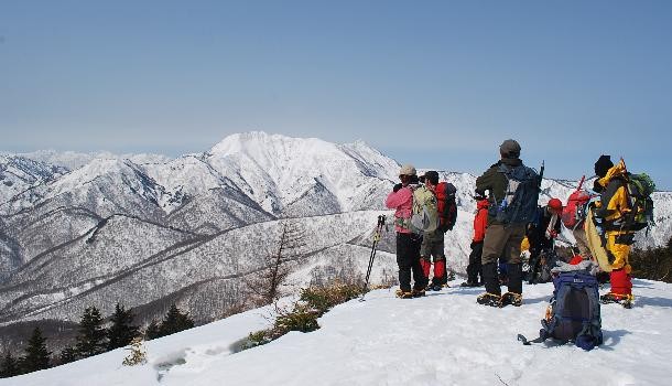 十二名パーティ登山で黒姫山山頂に辿る 西新道残雪コース