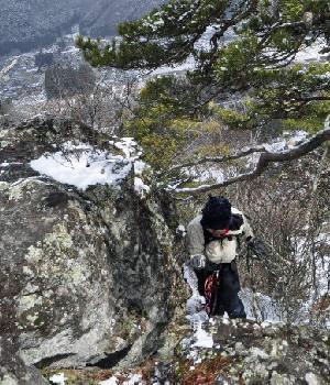 石祠岩峰に到着、下降ロープ準備 10:05-10:15 |