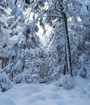 スリバチ池コース中間付近、梢間から射す冷たい太陽 |