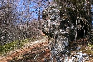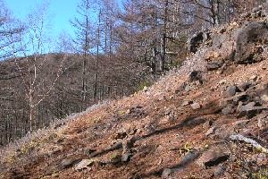 往路■花木園林道入口→(60分)→尾根取り付き点→(30分)→稜線出会い→(30分)→人面岩頭→(30分)→八柱山山頂