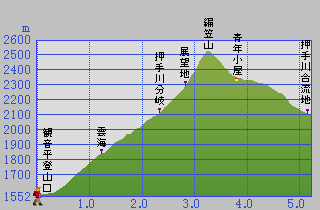 観音平コース 観音平登山口:1560m ↓ 1.2km 雲海展望地: 1850m ↓ 1.2km 押手川分岐: 2090m ↓ 1.0km 編笠山山頂: 2523m ↓ 0.6km 青年小屋分岐:2380m ■登山口と山頂までの標高差:約 960m ■登山口から山頂までの距離:約3400m ■駐車地:観音平登山口に大駐車場 ■トイレ:駐車場内と青年小屋 |
