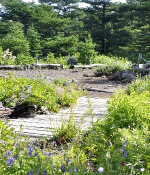 復路■黒斑山山頂→(30分)→中コース分岐→(20分)→中間草地→(45分)→車坂峠下山口