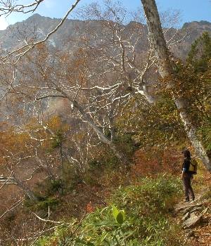 大谷原から西俣出会いまでの長い林道歩きも、紅葉が美しく飽きない |