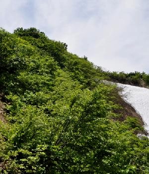 | 山頂で遭った地元の登山者(二人)に聞くと、かなり急勾配らしい西尾根三重ノ滝ルートを下る |