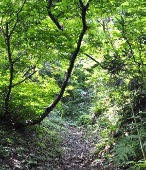快適な登山道 9:40 onMouse樹間から日本海方面展望 |