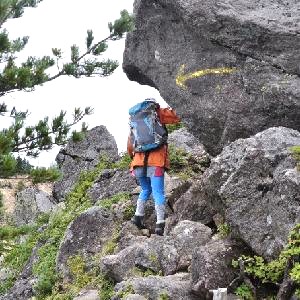 緩やかなガレ露岩地を歩く onMouse巨岩横を通過 |