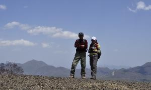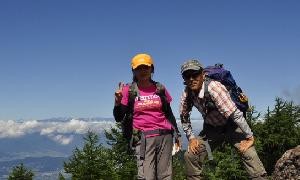 102.黒斑山 7月25日(日)天候:晴れ/PV山行・2名 リーダー&サブリーダー養成講習に同行し てくれたH岡さん。リーダーとしての心得 や歩行技術を教えながら、2時間30分か けて山頂着のゆっくりペース。登山は競争 ではなく、山に学び山を知ること…。それ が身につき、安全登山を心がけるようにな った時、リーダーとして他人をガイドでき るはず。 |